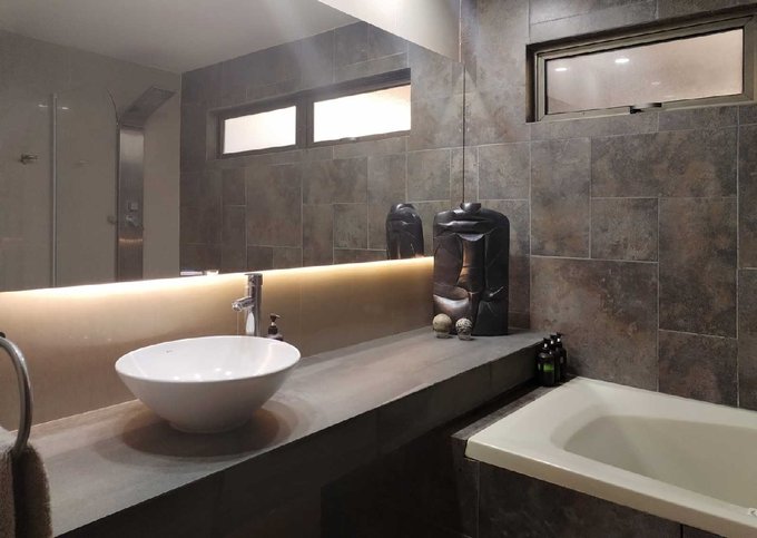 Primer nivel, encontrarás el dormitorio principal en suite, con salida a terraza, piscina y jardín, con walking closet pensado para dos. Baño completo con tina hidromasaje.