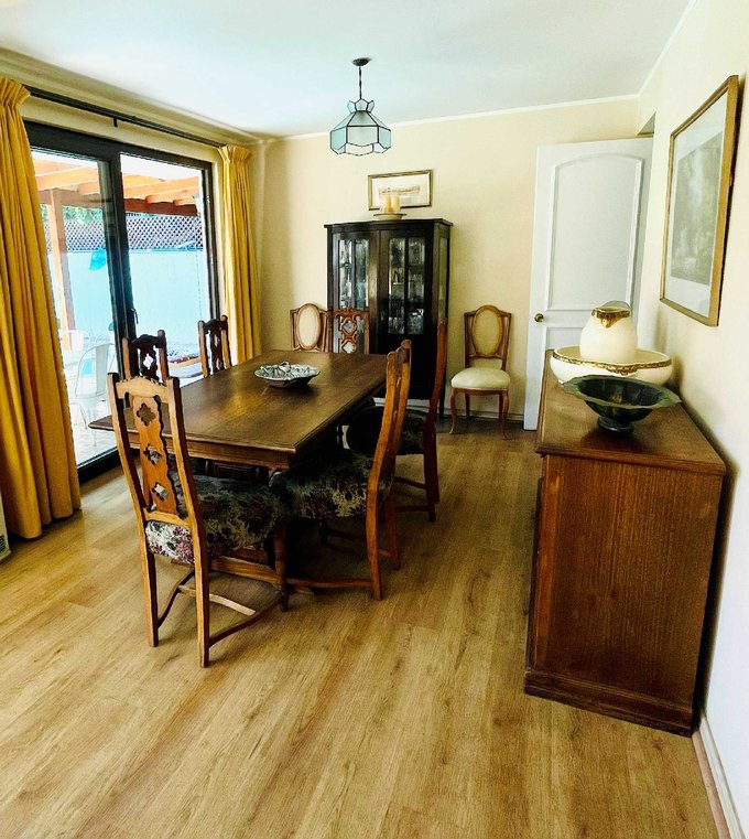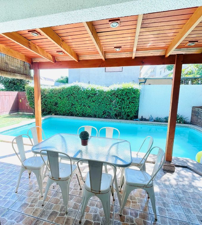 Preciosa y luminosa casa en venta, ubicada en un seguro y atractivo condominio en la comuna de La Reina. Con piscina,quincho y terraza. Situada en sector de Plaza Ossandón, cercano a colegios y comercio. Con excelente conectividad. Destaca además por su cómoda distribución y espacios bien pensados.