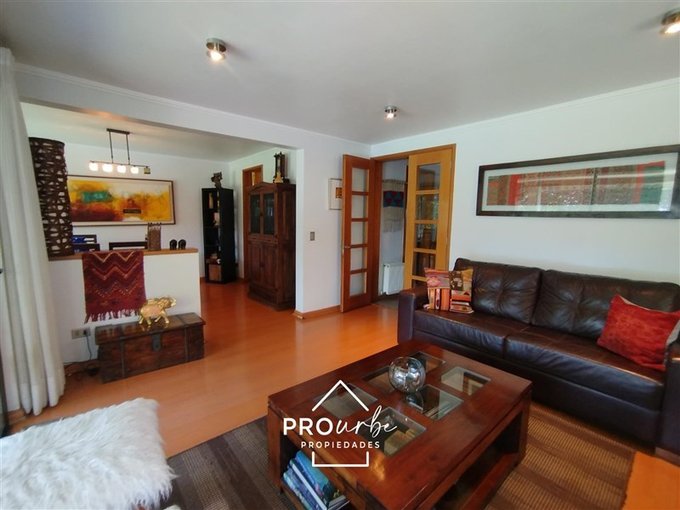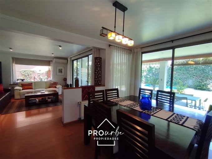Se vende casa en Julia Berstein, en el exclusivo sector de La Reina Alta. Esta propiedad de estilo chalet cuenta con 4 dormitorios, 3 baños y una gran sala de estar distribuidos en 198 m2 totales, sobre un terreno de 472 m2. Con una orientación poniente, la casa recibe una excelente iluminación natural durante la tarde.