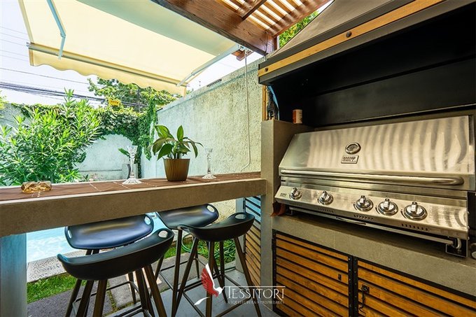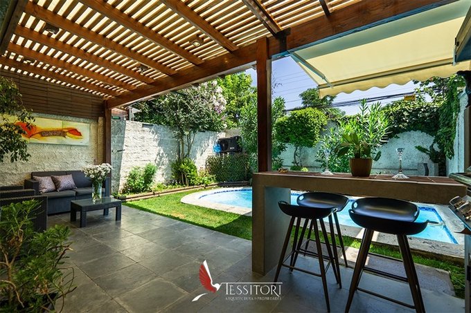 El exterior ofrece un agradable patio con quincho y piscina privada, pensado para el disfrute familiar.