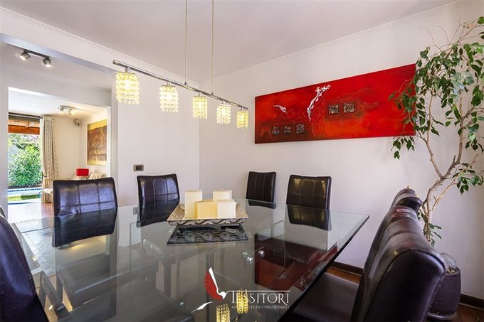 150 m terreno | 113 m construidos | 3 pisos | 3 dormitorios + mansarda | Dormitorio principal en suite |3 baños | 2 estacionamientos | Cocina cerrada | Patio de ropas | Terraza techada | Quincho | Piscina temperada