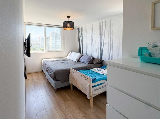 El edificio proporciona comodidad adicionales como ascensor, estacionamiento visitas, gimnasio y recepción. Para los más pequeños, con área de juegos infantiles. También dispone de lavandería común, sala de fiestas y salón multiusos. Los gastos comunes son aproximadamente $190,000 pesos mensuales e incluyen agua potable. No pierdas la oportunidad de vivir en uno de los lugares más atractivos y seguros del área metropolitana!