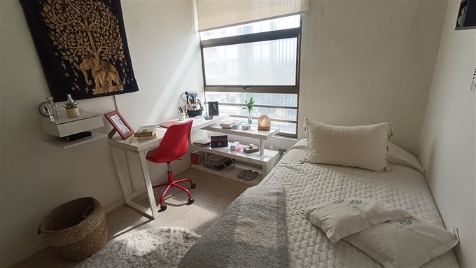 El edificio cuenta con control de acceso con portería, estacionamiento de visitas, piscina, sala eventos, sala reuniones, áreas verdes.