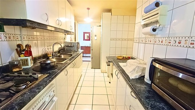 Cocina amoblada con comedor de diario, amplio lavadero separado con espacio para lavadora y secadora.