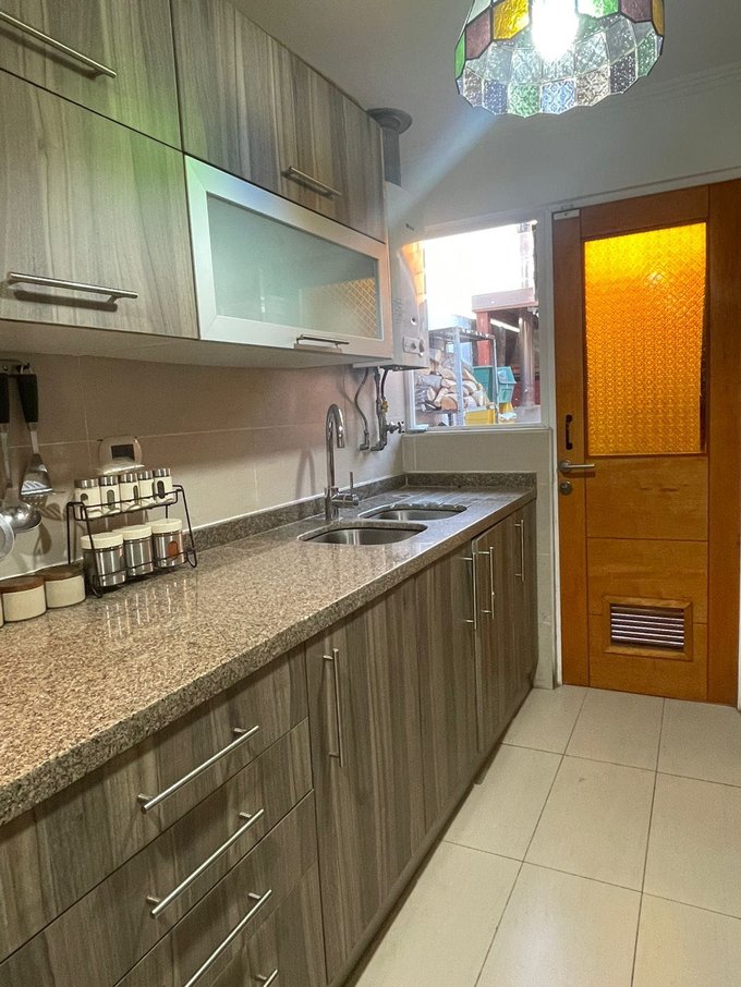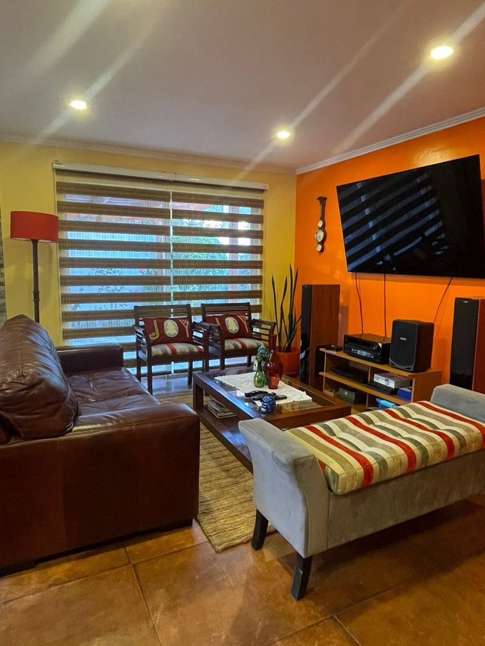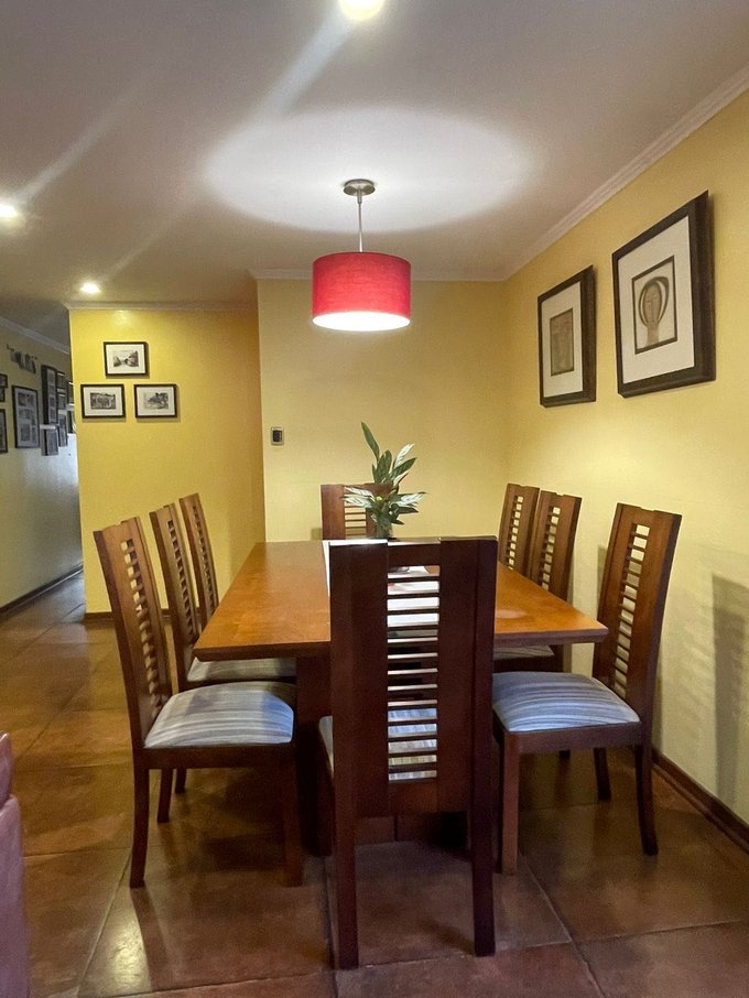 Con tres amplios dormitorios, dos baños, cocina independiente, living aparte, comedor con salida a terraza, sala de estar, patio posterior, quincho en obra, bodega,