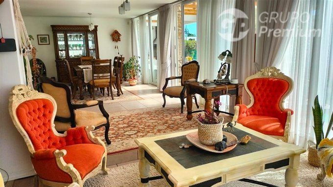 SCL_CODIGO Grupo Premium, Vende Amplia y Exclusiva Casa en Serena Golf, Sin Muebles, Zona de alta Plusvalía, superficie total del terreno 983 mts2, y una luminosa construcción de 270mts2, Casa principal de 4 dormitorios, uno en suite, muy amplios y asoleados, con espaciosos closet, consta de 4 baños, 2 en primer piso, 1 en segundo piso , y otro ubicado en la pieza de servicio, amplio Living Comedor, Sala de estar y TV, con ventanales hacia terraza cubierta que permite disfrutar de ella en cualquier época del año, terraza cuenta con quincho. Amplia oficina independiente con salida a terraza. Cocina tradicional con espacios para toda la familia. Logia techada, Bodega de suministros, estacionamiento para 5 vehículos, patio de acceso con radier. Patio con entorno verde, que invita al descanso. Esta hermosa casa, además cuenta con dos departamentos interiores, independientes de la casa, dos dormitorios, un baño completo y cocina cada uno. Caminando a 800 metros de la playa y muy cercana a Canchas de Golf, Condominio cuenta con un entorno seguro, acceso controlado las 24 horas, no se paga gastos comunes, Strip Center, Farmacia, Panadería, Clínica Dental, Cafetería Chile Express Lavandería. Entretención y deporte, Canchas de Golf, espacios para andar en bicicleta, Canchas de Tenis, Canchas de fútbol, Caballerizas Club House con Piscina, Colegio Alianza Francesa. Las medidas han sido informadas por el propietario, y están sujetas a revisión en tasación bancaria. Esperamos tu llamado para agendar una visita.