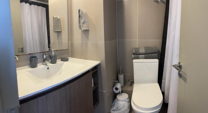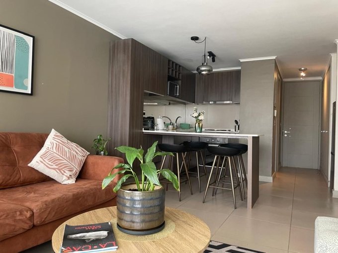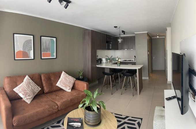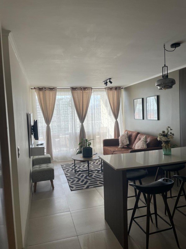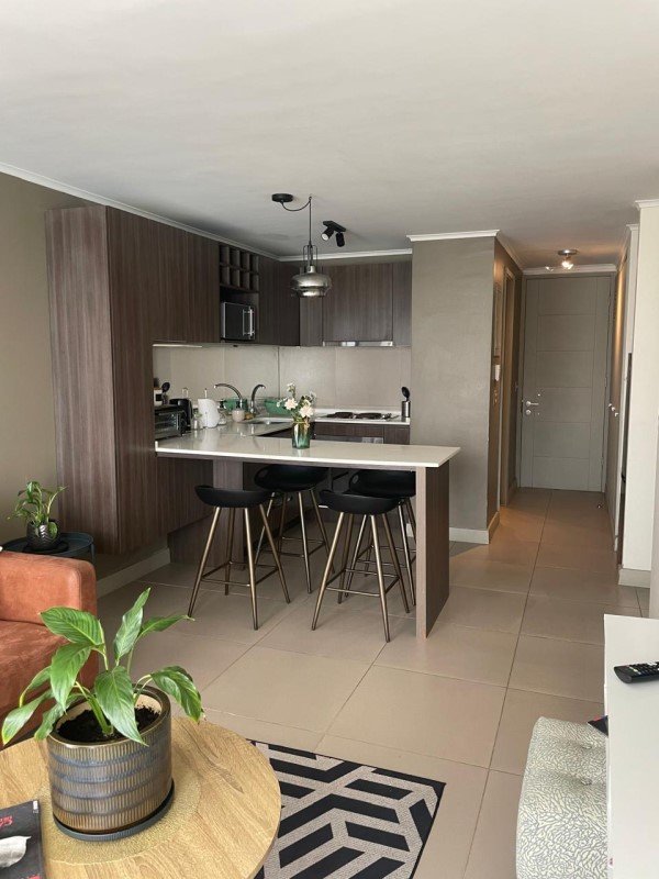 El departamento cuenta con dos habitaciones y dos baños, con orientación nor-poniente que permite disfrutar de luz natural durante gran parte del día.