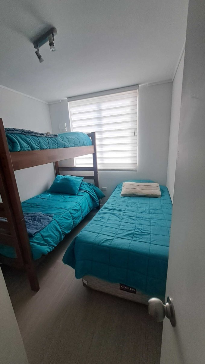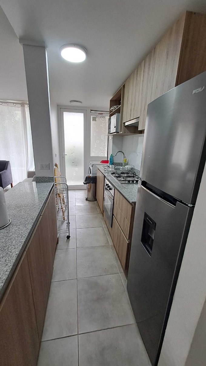 Condominio cuenta con piscina, áreas verdes, juegos infantiles, bicicletero, sala multiuso, portería 24/, estacionamiento.