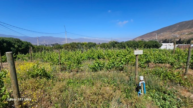Uno de los elementos más distintivos de esta parcela es su viñedo de uva vinífera, concebido como un jardín de variedades. Este proyecto combina valor estético, identidad territorial y potencial productivo, con más de 1.400 plantas distribuidas en siete cepas finas, seleccionadas por su calidad enológica y adaptabilidad al clima del valle.