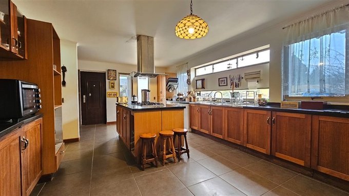 Hermosos jardines formados, grandes espacios de áreas verdes, piscina y quincho con comedor en el jardin, y baños en sector quincho y piscina.