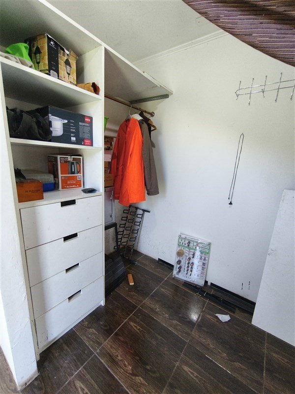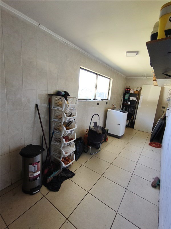 Amplia logia con estanterías espacio para congeladoras y refrigeradores