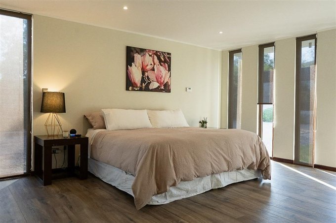 Esta espectacular casa de una planta de 320 m2 construidos app, se encuentra en una amplia parcela plana de 5.000 m 2. Con un diseño robusto y elegante, es ideal para quienes buscan una residencia en un entorno tranquilo, seguro y lleno de comodidades. La propiedad ha sido cuidadosamente, combinando amplitud, elegancia, funcionalidad y un ambiente acogedor con detalles naturales y vistas despejadas.