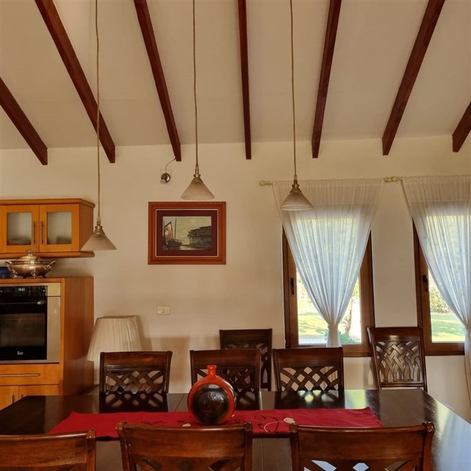 Comedor vigas a la vista separado del living Toda la propiedad con hermosa vista a los jardìnes