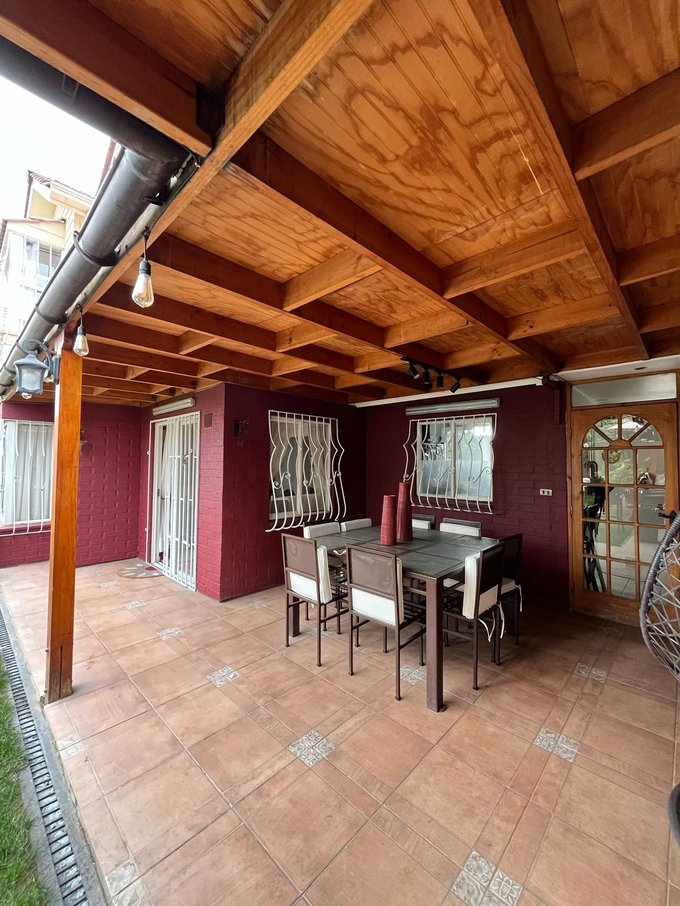 Patio trasero techado.