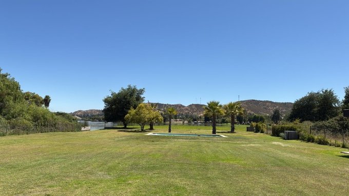 Piscina en obra, bodega de 20 m2 aproximados, baños y cocina, sistema de regadío automático, red de agua, jardín conformado, portón.