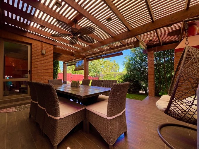 -gran patio al poniente con hermosa y amplia terraza con cobertizo, ventilador en techo todo muy bien mantenido.