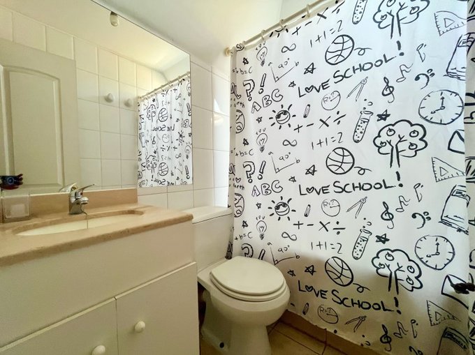 -baño completo con tina y ventilación natural.
