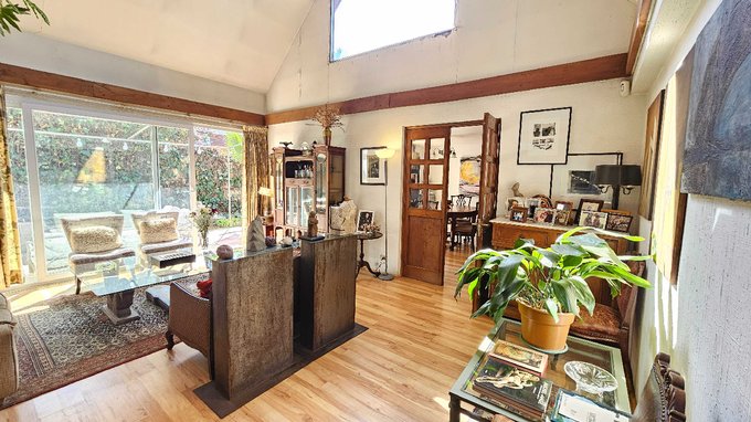 hall doble altura, living amplio y comedor separado, grandes ventanales con salida a terraza y jardin.