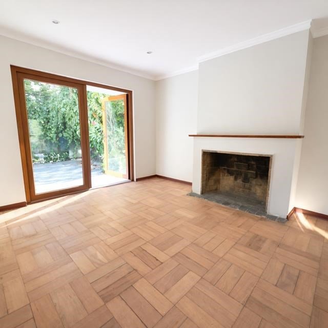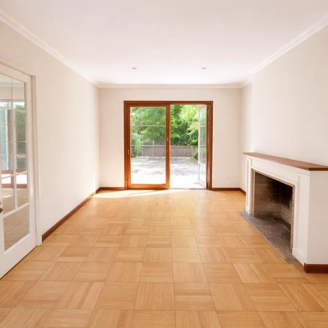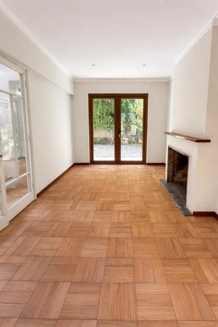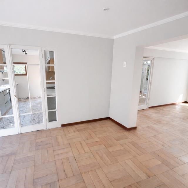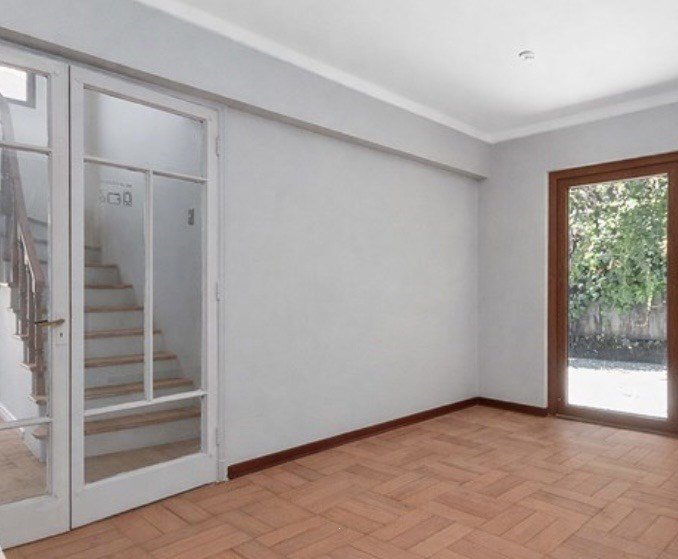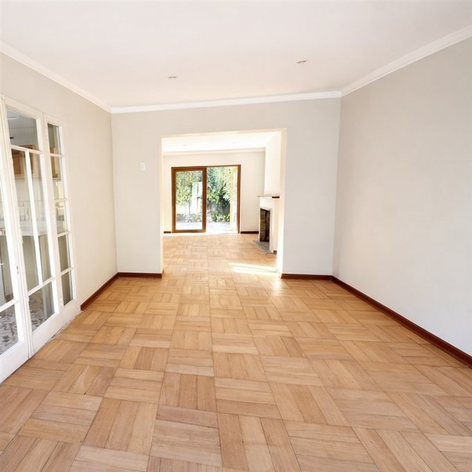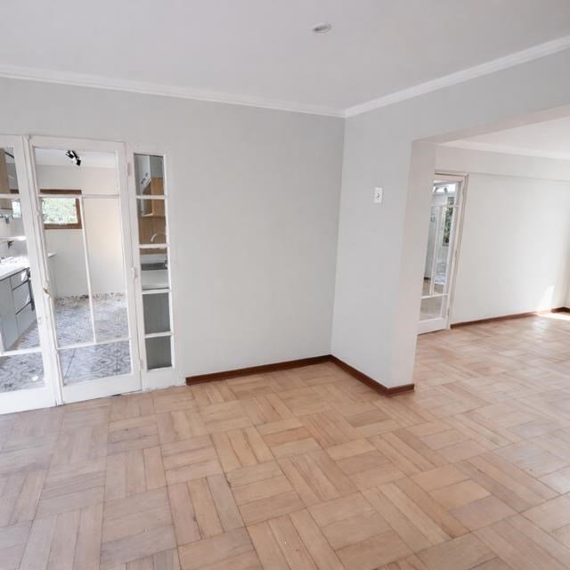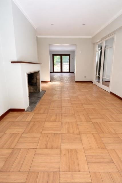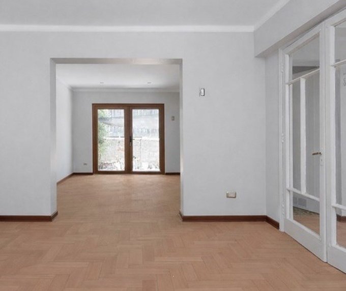 Piso de parquet pulido en todo el departamento.
