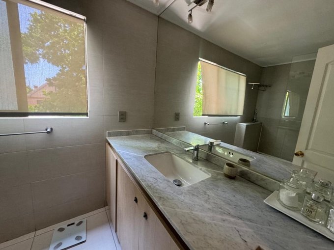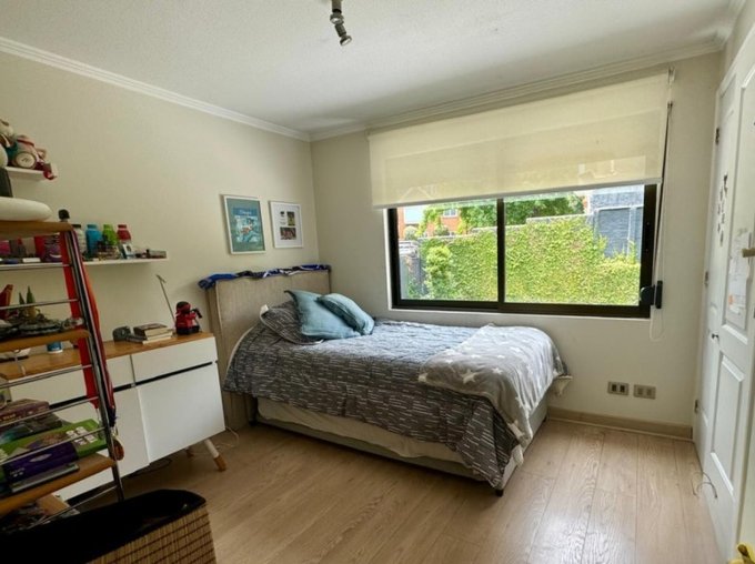 Encantadora casa ubicada en el medio de un tranquilo condominio ubicado en un sector privilegiado de San Carlos de Apoquindo, cercano a plaza de juegos, comercios, locomoción y diversos servicios. Cuenta con 4 dormitorios, 4 baños, sala de estar, escritorio (o 5to dormitorio), servicios completo y agradable patio con quincho y piscina. En perfecto estado de conservación, vale la pena visitar!