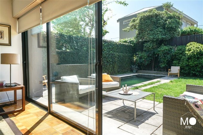 Patio trasero con piscina y terraza
