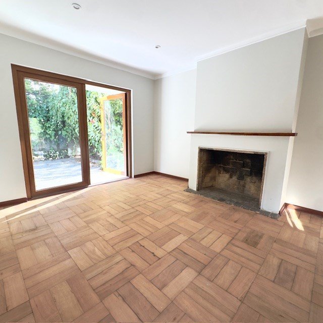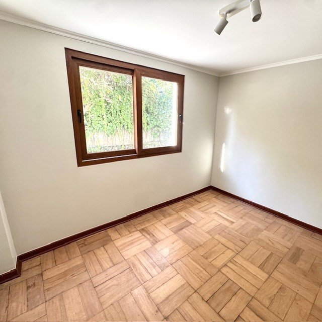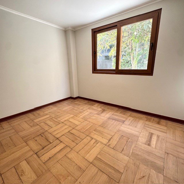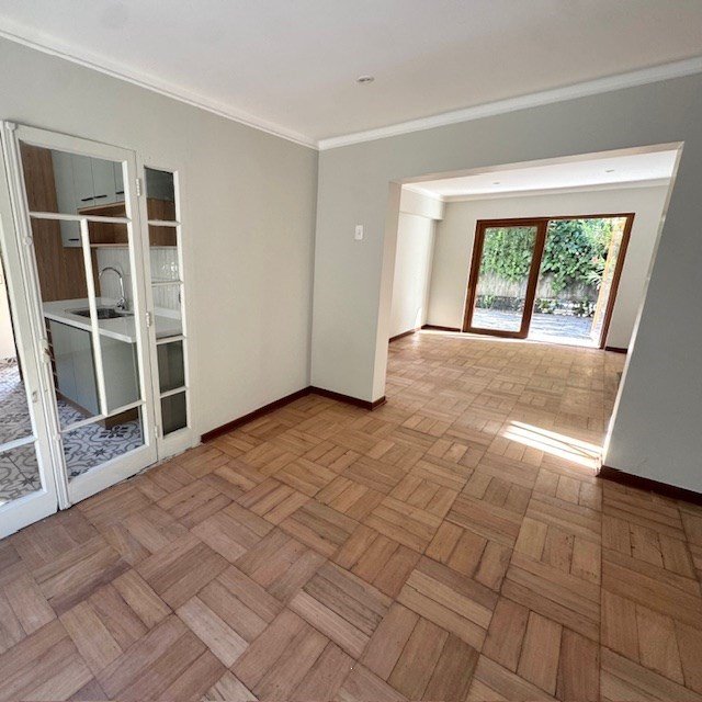 Piso de parquet pulido en todo el departamento.