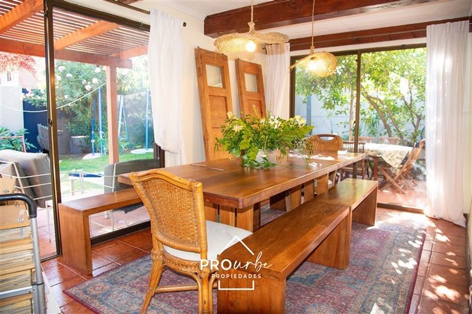 Esta linda casa de 4 dormitorios más servicio se ubica en un sector privilegiado dentro del barrio de San Carlos de Apoquindo. Combina tranquilidad, gracias a su entorno de plazas y cercanía a los servicios: puedes llegar en pocos minutos caminando a los supermercados, bancos, farmacias y al nuevo sector de restaurantes del Paseo Los Domínicos. También te encontrarás cerca de todos los colegios del sector (Scuola italiana, Cordillera, Padre Hurtado, etc).