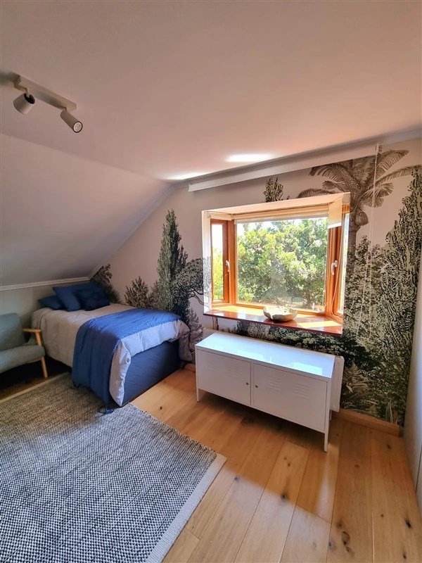 La propiedad se complementa con dos estacionamientos, dos bodegas, portón eléctrico y cerco eléctrico, ofreciendo seguridad y practicidad. En términos de equipamiento, cuenta con caldera nueva, calefacción por radiadores y aire acondicionado, garantizando máximo confort durante todo el año.