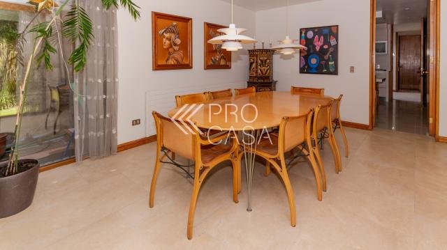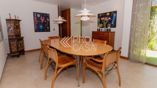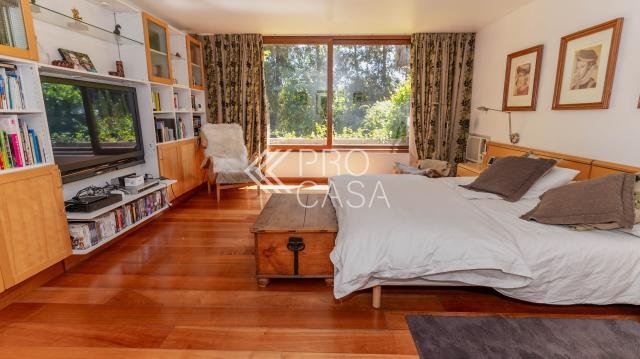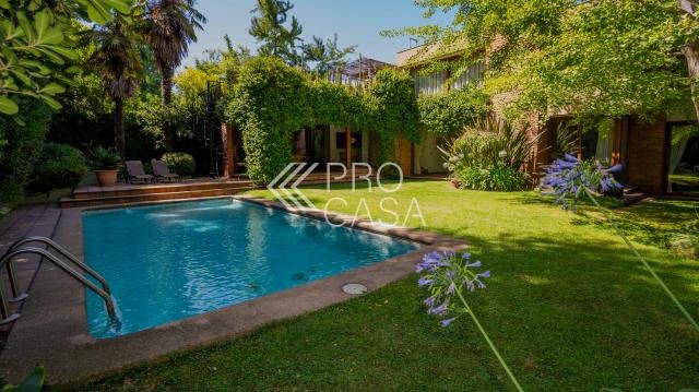 CONDOMINIO muy seguro de 8 casas en sector privilegiado de Los Domínicos. Amplio hall de entrada de doble altura. Living y comedor separados con salida a terraza y gran jardín con piscina. Sala de estar. Cocina con isla, comedor de diario y repostero. Logia. Dormitorio más baño de servicio. Patio interior con bodega. 3 Dormitorios más dos baños completos. Dormitorio principal en suite con walk in closet y amplia sala de vestir con salida a terraza y jacuzzi. Escritorio de buen tamaño y sala de estar o gimnasio. A DESTACAR Aire acondicionado en el segundo piso. Calefacción sectorizada por radiadores Pisos de ingeniería y porcelanato Paneles solares que permiten eficiencia energética para electricidad y agua caliente. Cerco eléctrico y cámaras de seguridad. 350 m2 útiles en 820 m2 de terreno. Estacionamiento para 3 autos, dos de ellos techados. Bodega. Gastos Comunes:$ 207622.00 Contribuciones:$$1.354.467 aprox. (cada cuota) Código interno Procasa: 67485