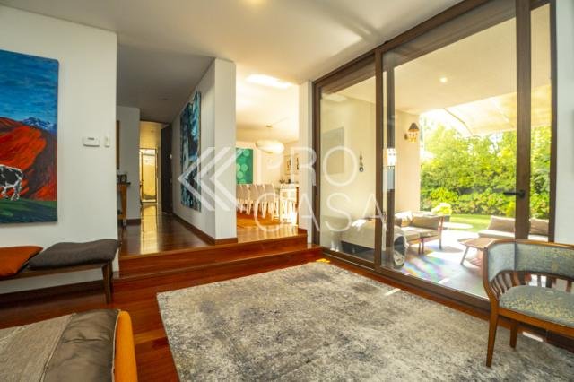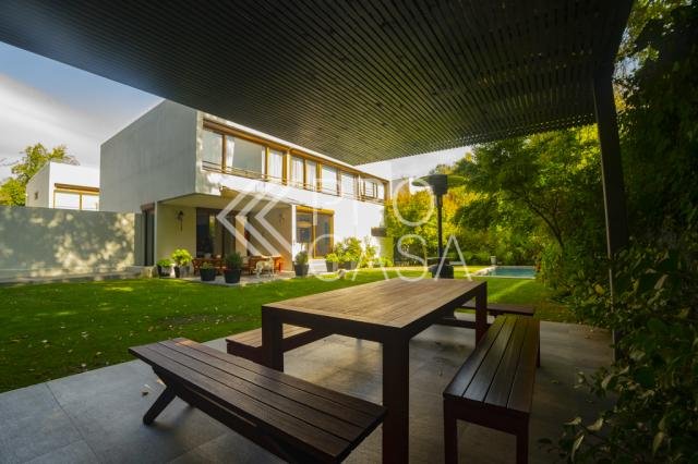 Vende casa mediterránea no perimetral en exclusivo condominio de solo 6 casas, Sector San Damián. Seguridad las 24 horas y Excelente conectividad. 1er PISO. -Amplio hall de entrada -Baño de visitas -Gran living y comedor separados, con salida a terraza techada, lindo jardín formado con quincho en obra techado y piscina. -Cocina con comedor de diario, equipada con artefactos Miele y loggia techada. 2do PISO. -Gran Dormitorio principal en suite, con área de vestuario o escritorio, walking in closet grande y baño con jacuzzi. -3 dormitorios amplios. -2 baños completos. -Sala de estar. -Desde el segundo piso se sube a una terraza con una vista panorámica de la ciudad. Subterráneo. -Gran sala de estar o de cine. -2 Piezas de servicio. -1 Baño completo. Equipamiento. -Ventanas de termopanel. -Persianas eléctricas. -Calefacción central por loza radiante. -Aspirado centralizado. -Piso de madera en toda la casa. -4 estacionamientos subterráneos. -Estacionamientos de visitas. 350 m2 útiles en un total de 670 m2 (Metraje entregado por propietario, sujeto a verificación) Código interno Procasa: 67790