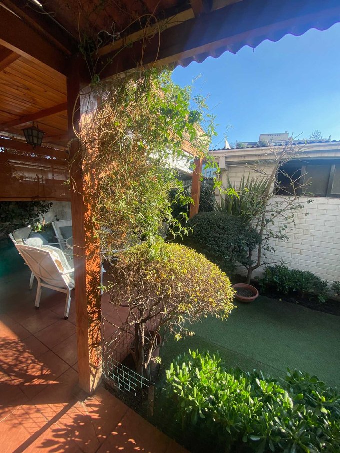 El patio trasero es uno de los espacios más agradables de la casa: un jardín con abundante vegetación y dos terrazas que invitan a compartir, descansar o disfrutar con familia y amigos. En este sector también se encuentra, independiente de la casa, una pieza de servicio con baño y una bodega.