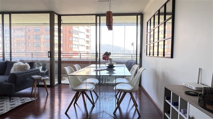 Amplio departamento de 125 m totales, con excelente distribución y vista despejada hacia áreas verdes y el cerro Manquehue. Ubicado en sector residencial consolidado, con conectividad directa a Av. Cristóbal Colón, Av. Manquehue y cercano a servicios, parques y centros educativos.