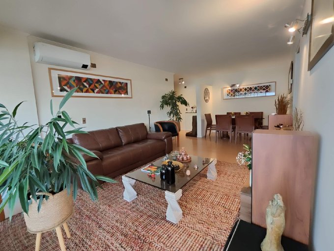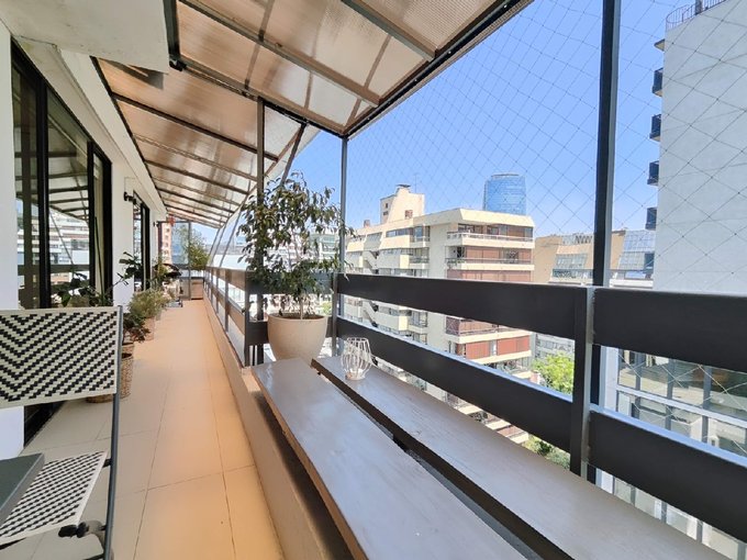 Consta de 4 dormitorios( 1 en suite, 1 de servicio), 3 baños( 1 de servicio), living comedor, cocina cerrada amoblada con logia. AMPLIA TERRAZA, que recorre todo el departamento. Calefacción losa radiante. Depto en excelente estado.