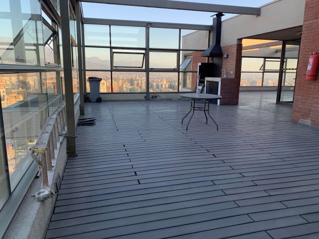 PROCASA . Depto en Escuela Militar, ideal para inversionistas, living comedor con piso flotante, terraza de 12 metros a lo largo de todo el departamento cerrada con termopanel, maravillosa vista al oriente, dormitorio principal en suite con closet, segundo domitorio mas pequeño y segundo baño. Hay conexión para lavadora en closet del pasillo. Cuenta con 1 estacionamiento. El edificio tiene 2 quinchos panoramicos, gimnasio, jacuzzi, sector reposeras, piscinas al aire libre y temperada