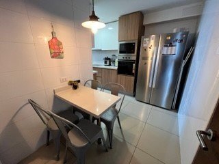 extracción integrada en mueble aéreo, horno microondas y lavavajilla empotrados. Comedor de diario y gran despensa.
