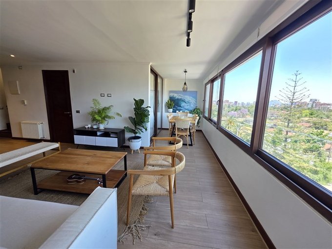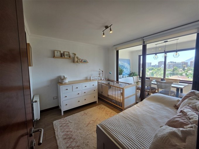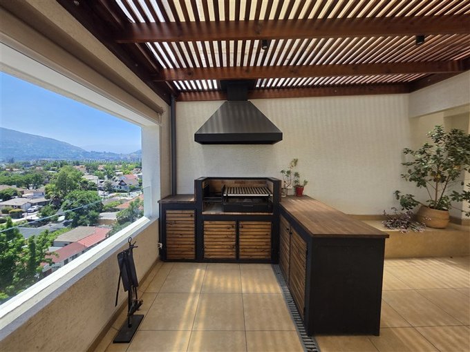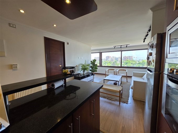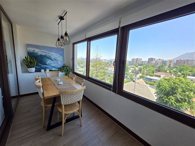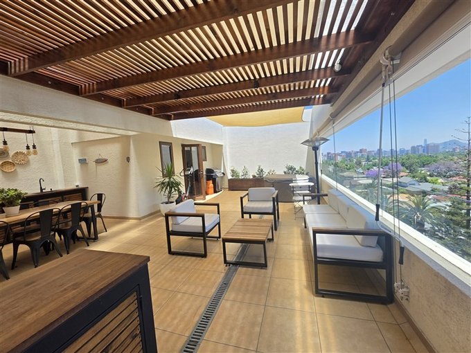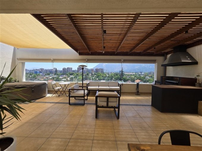 El departamento dúplex se encuentra en una calle tranquila libre de ruidos, ocupando los 2 últimos pisos del edificio, con una terraza de 60 m2 en el 8, la que contiene un gran quincho techado y una zona con jardineras para su jacuzzi con vista despejada hacia el Nor-Oriente. El edificio dispone de conserjería y vigilancia 24/7, además de la presencia de un mayordomo, garantizando una administración eficiente.