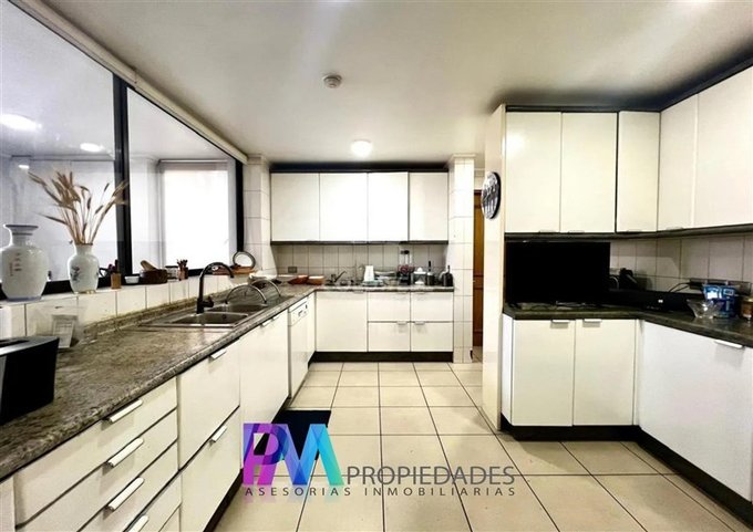 Cocina espaciosa y equipada con cubierta de granito, comedor de diario, logia luminosa, dormitorio y baño de servicio, además de pieza adicional para despensa o taller. Zona de servicio con entrada y ascensor independiente.