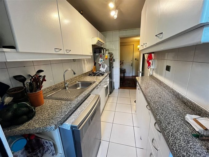 La cocina destaca por su buen tamaño, cubierta de granito y acceso a una amplia loggia. Dispone de dos dormitorios espaciosos, ambos con salida a terraza; el principal cuenta con walk-in closet y baño en suite.