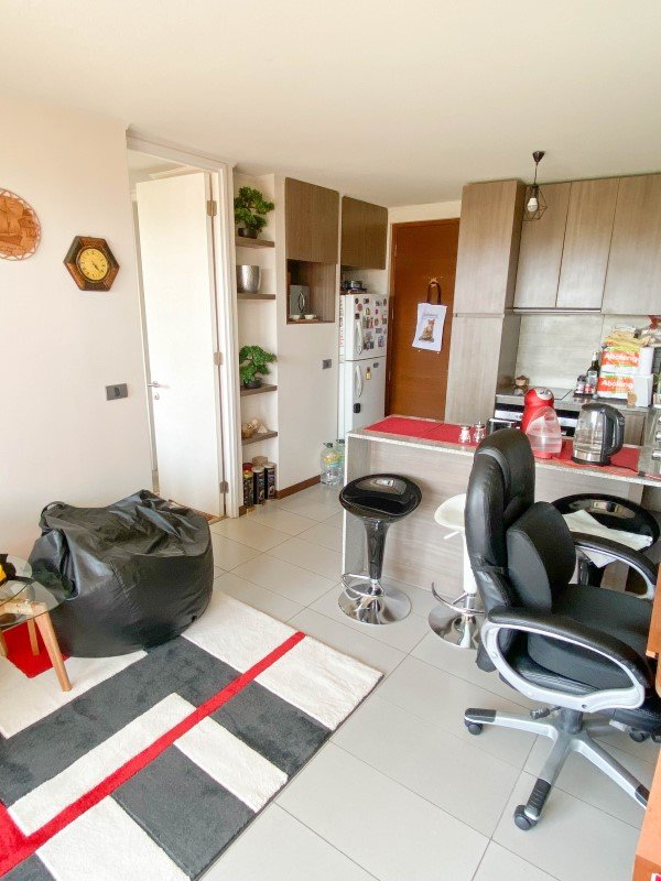 La propiedad posee 33 m2 útiles, 35m2 totales, terraza con HERMOSA vista despejada, 1 dormitorio en suite, 1 baño, living comedor juntos y cocina americana, además de poseer conexión a lavadora.