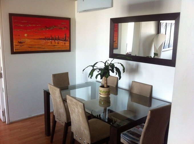 Cocina cerrada amoblada, incluye cocina a gas , se entrega con cortinas hangaroas, soportes de madera para televisores y lámparas. Gastos comunes $120.000. Contribuciones $150.000