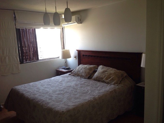 77 metros totales, 7 de terraza con linda vista despejada al poniente. Se encuentra en el piso 15 de 20 pisos. Posee aire acondicionado en el dormitorio principal.