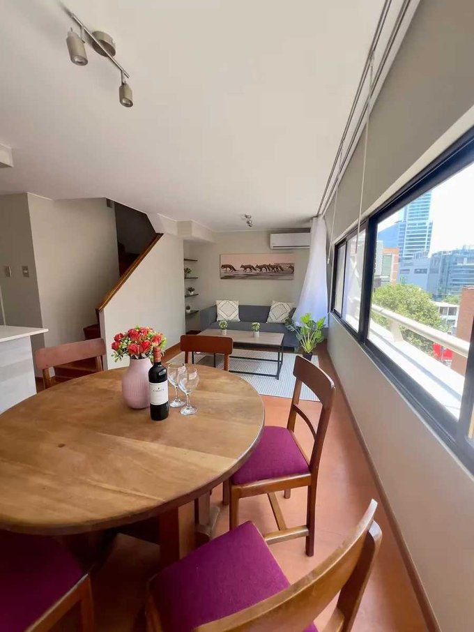 Disfruta de la conveniencia de contar con un estacionamiento propio y una bodega para ese espacio adicional que siempre necesitas. Con 55 metros cuadrados construidos, este departamento ofrece la combinación perfecta de funcionalidad y estilo, distribuidos de manera eficiente para maximizar cada rincón. Cuenta con dos habitaciones (una en suite), 2 baños, cocina full equipada, espacio de trabajo, aire acondicionado, y un estacionamiento. El apartamento cuenta con dos pisos. En el primero hay una cocina integrada con el living y comedor, y un baño. En el segundo piso se encuentra la habitación principal en suite, con cama matrimonial y baño incorporado. Además está la segunda habitación, que cuenta con un camarote y un escritorio ideal para trabajar o estudiar. El edificio cuenta con ascensor hasta el departamento. Edificio: seguridad y conserjería las 24 hrs.