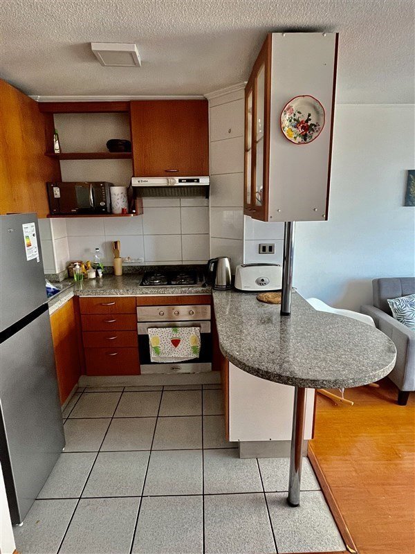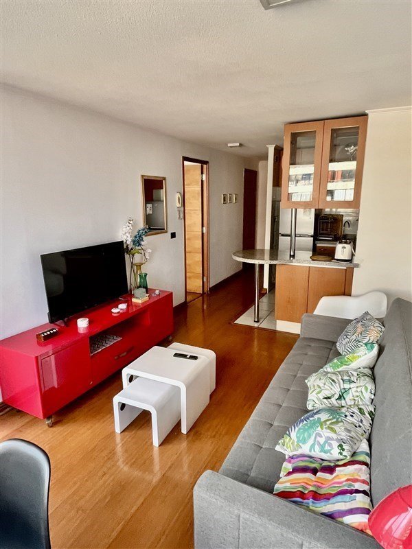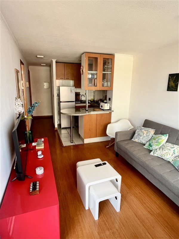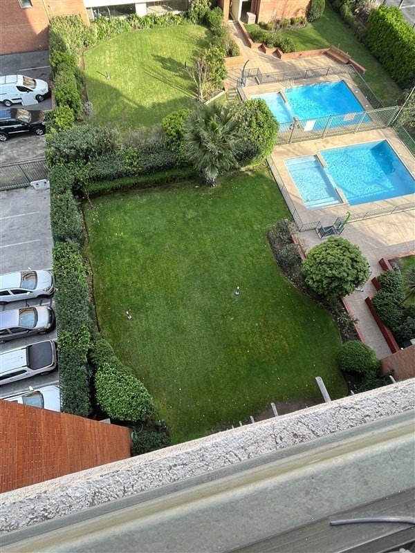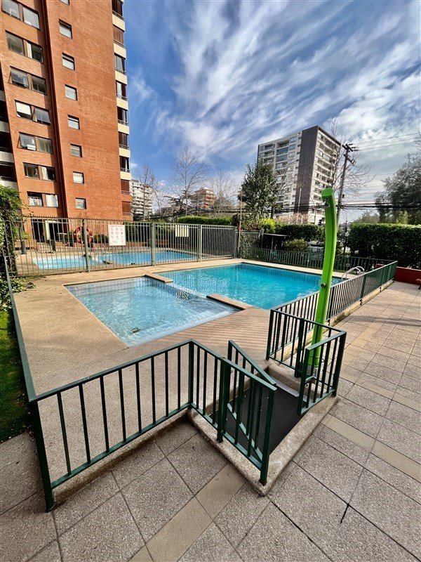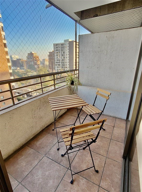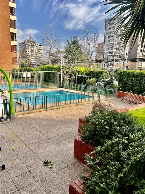 DISTRIBUCION : Hall de entrada, living con salida a una agradable terraza con linda vista, moderna cocina totalmente equipada. Amplio dormitorio en suite con salida a la terraza, baño completo y buenos closet. Todo el departamento con piso flotante, UN ESTACIONAMIENTO Y BODEGA, Gastos comunes de $104.000 aprox. Edificio del año 2007, tiene piscina, jardines, lavandería, sala multiuso, gimnasio, estacionamientos de visita, conserjería las 24 horas. Cercano a variada locomoción colectiva , estación metro Escuela Militar, comercio, colegios, lugares de recreación, etc. SE RECOMIENDA VISITAR
