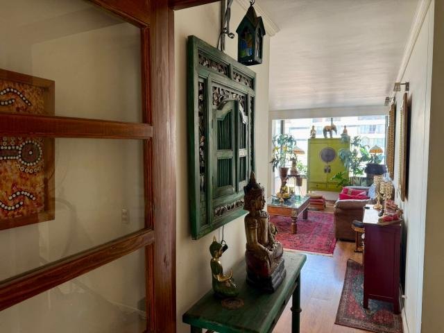 BUEN DEPARTAMENTO, hall entrada y recibos con pisos flotantes, amplios recibos y salida a terraza al norte, completamente cerrada con ventanas, cocina amoblada, no tiene loggia pero se puede hacer en espacio de closet, amplia suite, walking closet y baño completo con tina, segundo dormitorio más pequeño y segundo baño afuera con ducha. ESTACIONAMIENTO Y BODEGA, bajo gastos comunes y contribuciones $ 150.000.- c/u Código interno Procasa: 68621