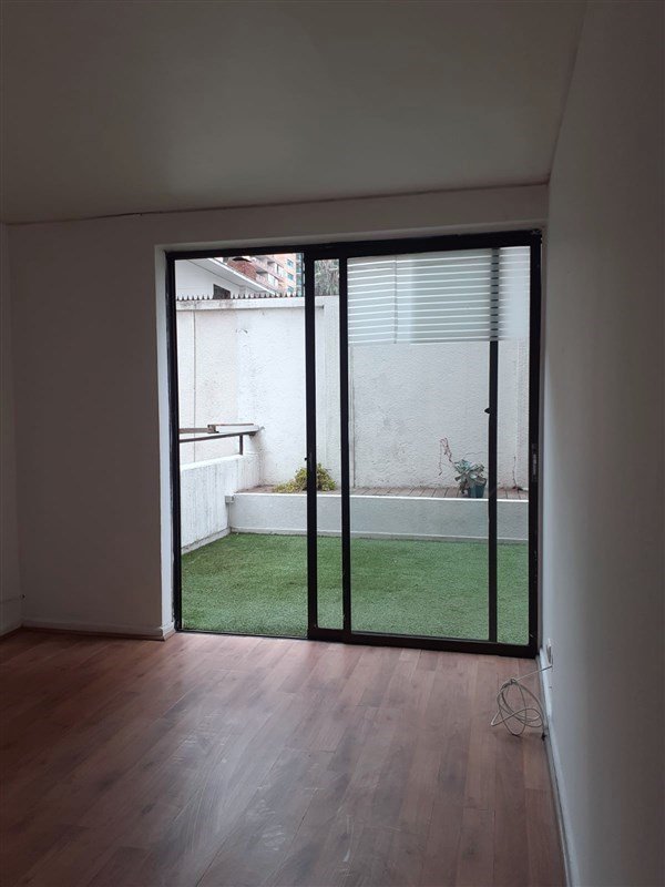 Departamento en primer piso elevado, a posos del metro Escuela Militar, dos dormitorios, 2 baños, cocina cerrada, sistema de termo eléctrico, todo con piso flotante, amplia terraza. Estacionamiento y bodega. Gastos comunes de 230.000 pesos aprox.