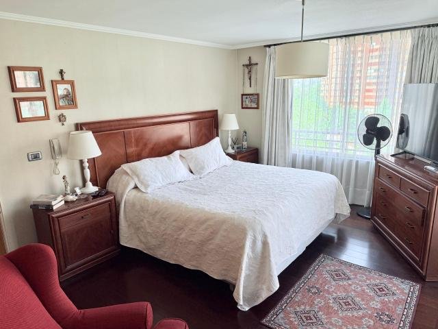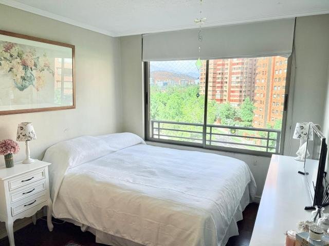 ESTUPENDO DEPARTAMENTO muy bien ubicado en barrio residencial de Las Condes. EDIFICIO muy seguro con acceso controlado y estacionamientos de visitas, amplios jardines y piscina en primer piso, áreas verdes, quincho, sala multiuso, sala niños, centro de lavado, gimnasio, sala de reuniones. DEPARTAMENTO amplio hall y buena luz natural, con puertas con acceso a recibos, terraza, amplia cocina con comedor de dirario, loggia. DORMITORIOS 4 en total, dos de los cuales se encuentran en suite, la suite principal tiene walking closet y terraza propia privada, todo el departamento tiene linda vista, cielos altos. ESTACIONAMIENTOS dos unidades en tandem. BODEGA una unidad en subsuelo. GASTOS COMUNES $ 400.000.- Código interno Procasa: 68687
