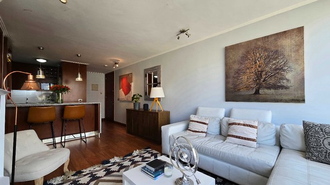 El departamento se encuentra full amoblado y equipado, incluye a parte de lo usual una impresora laser ideal para personas de negocios y una Thermomix para hacer más práctico tus comidas diarias.