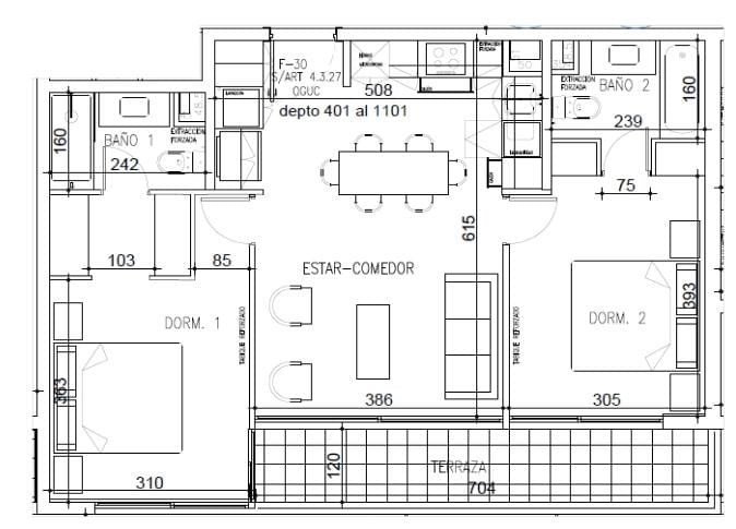 Una planta bien pensada donde los dos dormitorios están ubicados a cada extremo del living-comedor, garantizando privacidad total para cada habitación. Ideal para parejas, profesionales que trabajan desde casa, o quienes necesitan un dormitorio de visitas o estudio completamente independiente.