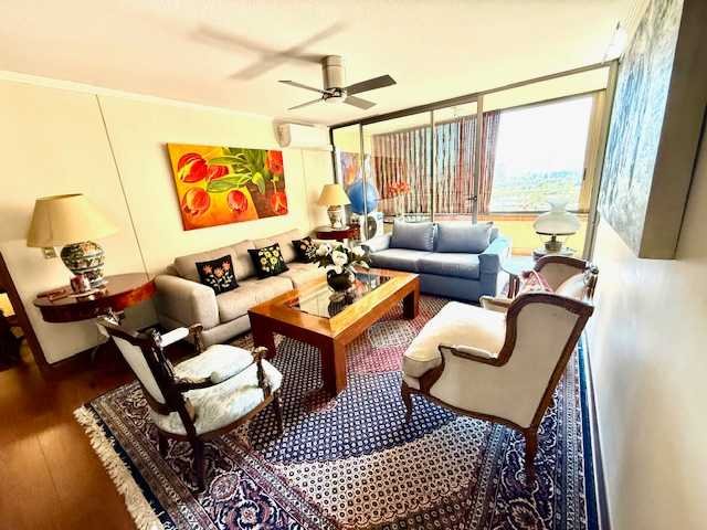 Departamento en excelente estado, con vista despejada en toda la propiedad desde un doceavo piso al cerro Manquehue, con la luminosidad que otorga la orientación Nor Oriente.