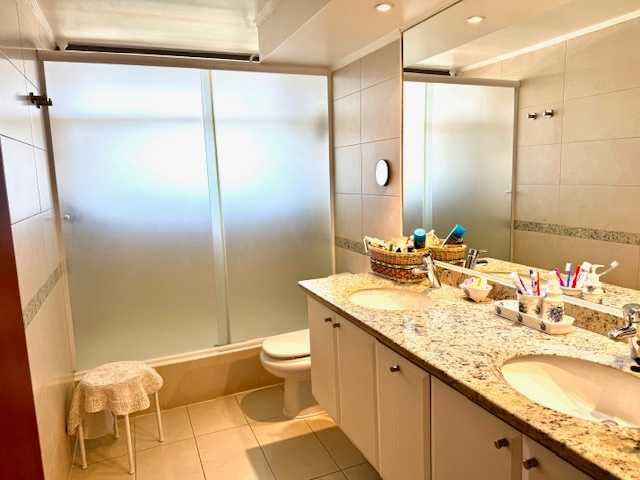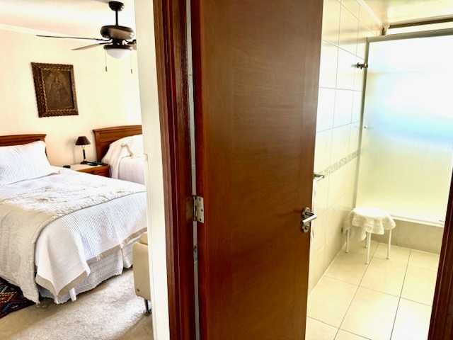 De los tres dormitorios, uno está en suite con walking closet.Los otros dos comparten un baño completo. Además del baño de visitas.